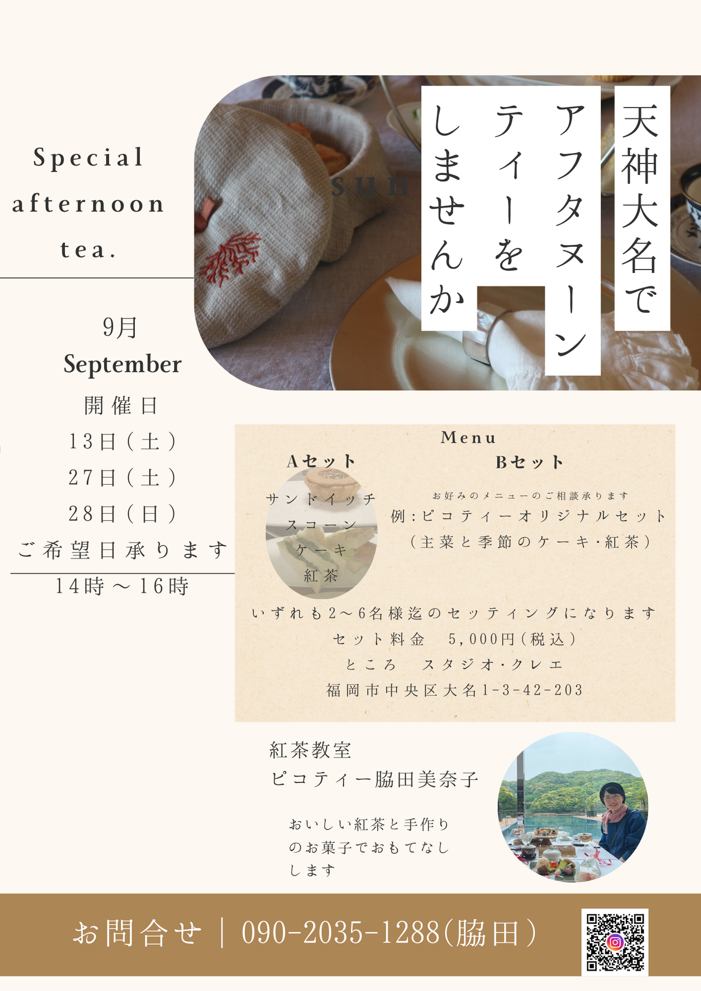 福岡大名のおもてなしティーレッスン『ティー&ランチ』