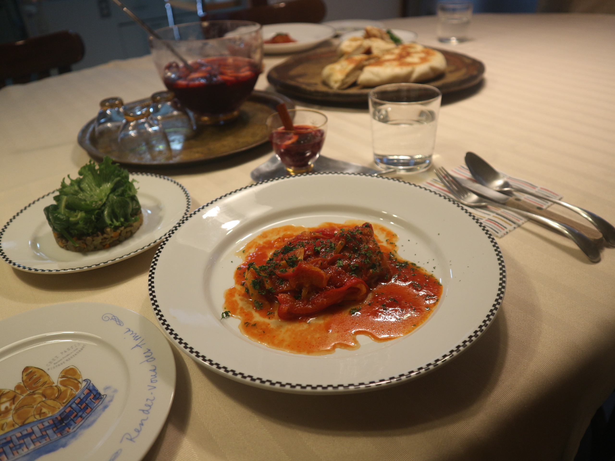 鶏の煮込みにレンズ豆のサラダ、バスク風おもてなし